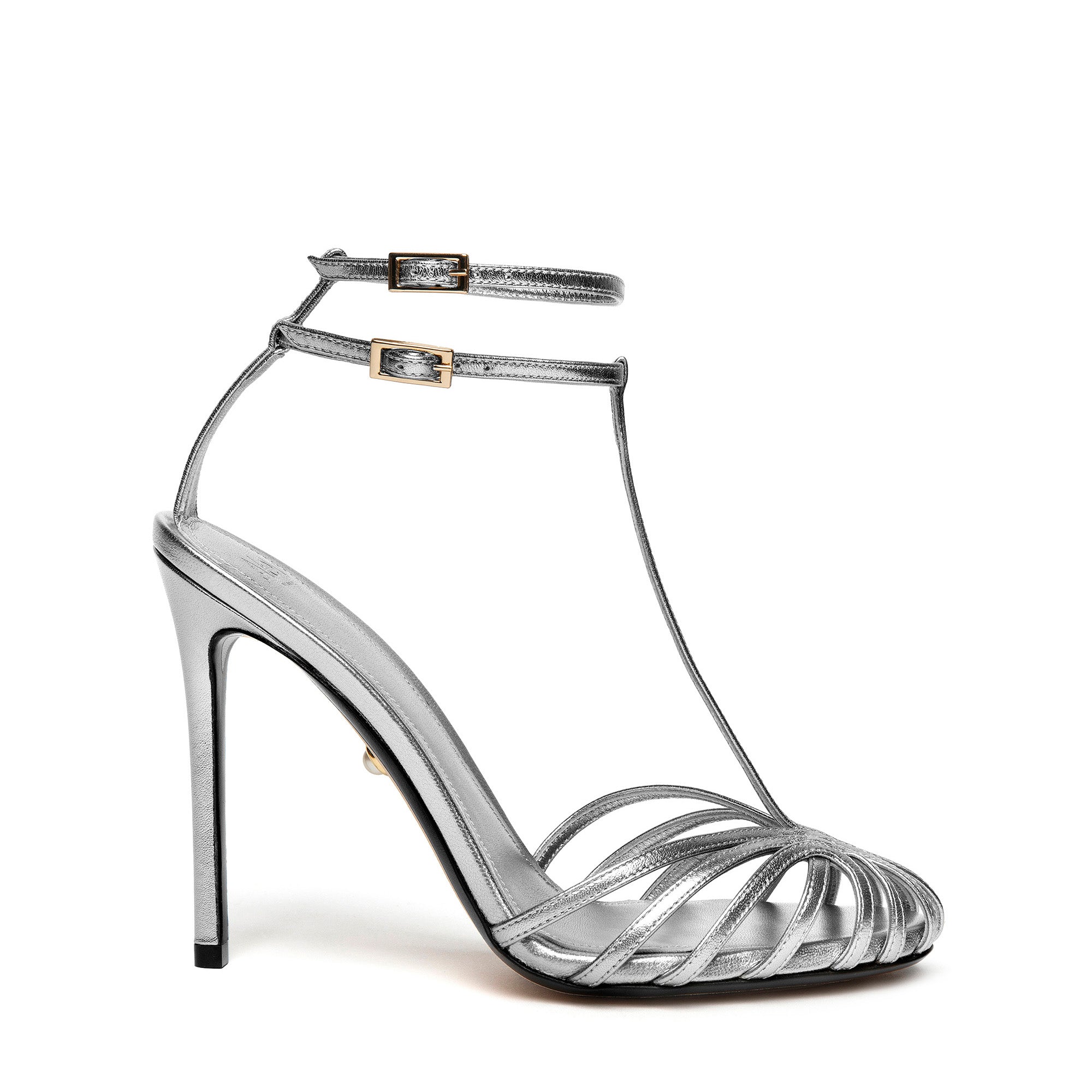 This sandal is realized in laminated patent leather. Perfect for special occasions.