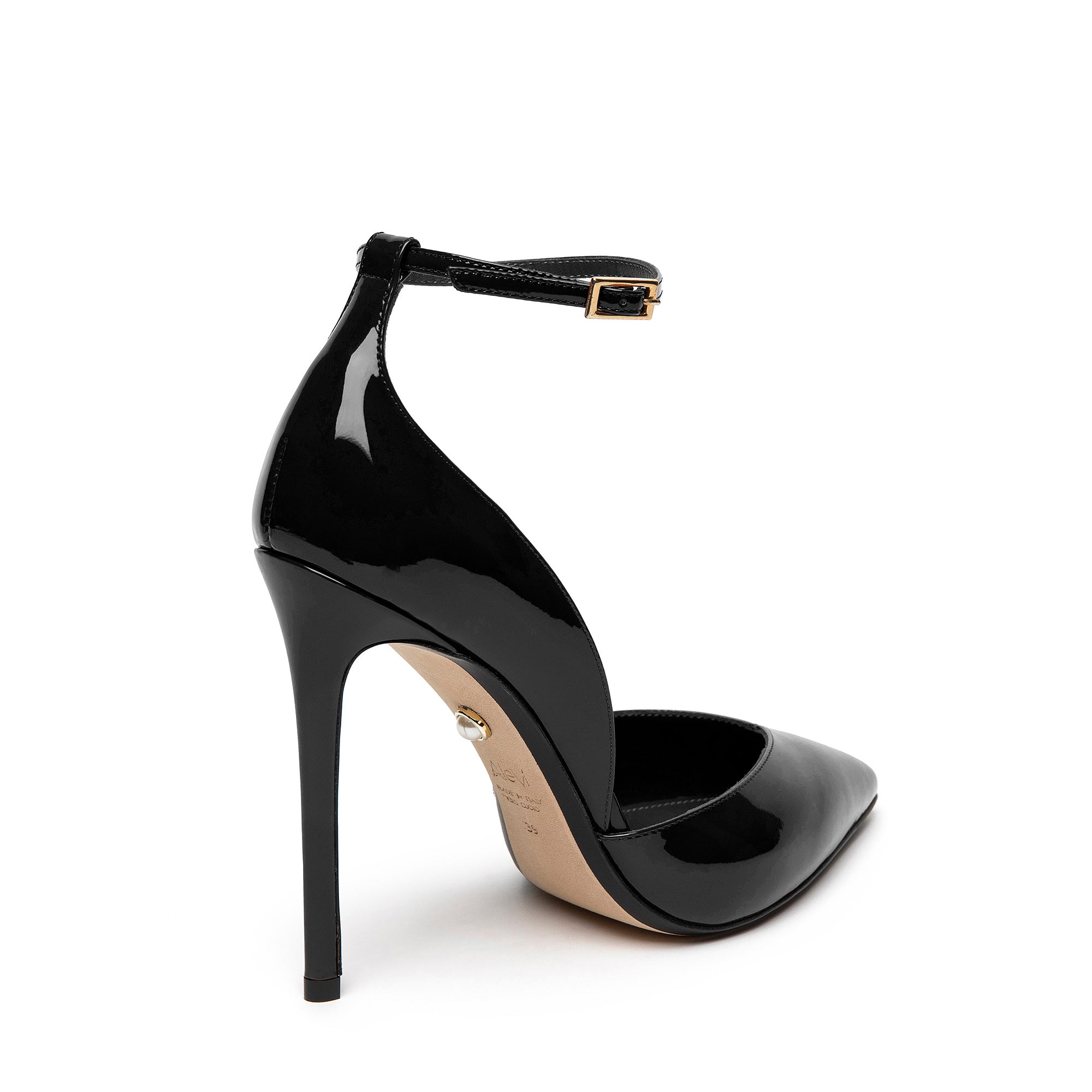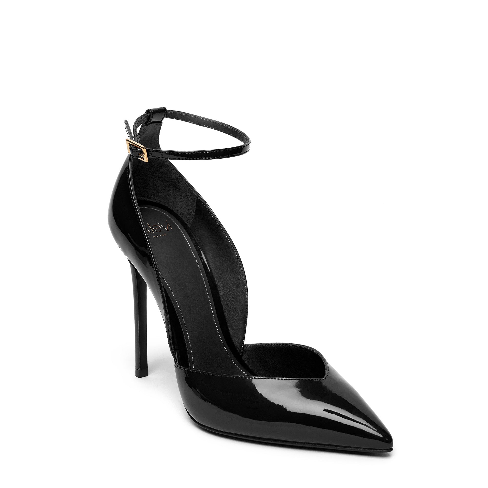 Décolleté in vernice con cinturino regolabile.
